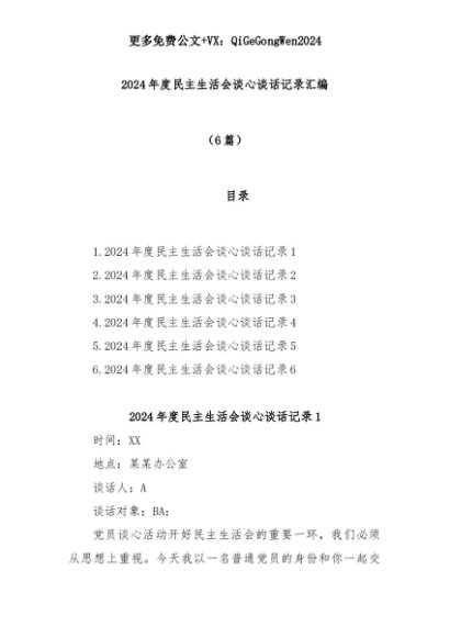 【七哥公文】2025年:(6篇)2024年度民主生活会谈心谈话记录汇编+更多免费公文+VX:QiGeGongWen2024+更多免费公文+VX:QiGeGongWen2024