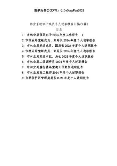 【七哥公文】2025年:(9篇)林业系统班子成员个人述职报告汇编+更多免费公文+VX:QiGeGongWen2024+更多免费公文+VX:QiGeGongWen2024