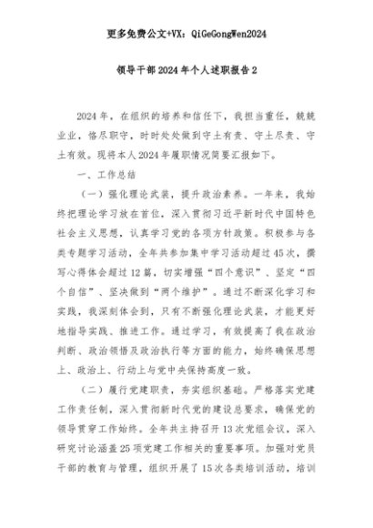 【七哥公文】2025年:领导干部2024年个人述职报告2+更多免费公文+VX:QiGeGongWen2024+更多免费公文+VX:QiGeGongWen2024