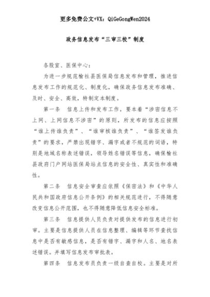 【七哥公文】2025年:政务信息发布“三审三校”制度+更多免费公文+VX:QiGeGongWen2024+更多免费公文+VX:QiGeGongWen2024