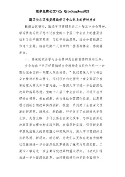 【七哥公文】2025年:副区长在区党委理论学习中心组上的研讨发言+更多免费公文+VX:QiGeGongWen2024+更多免费公文+VX:QiGeGongWen2024