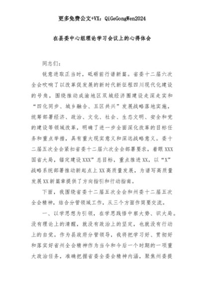 【七哥公文】2025年:在县委中心组理论学习会议上的心得体会+更多免费公文+VX:QiGeGongWen2024+更多免费公文+VX:QiGeGongWen2024