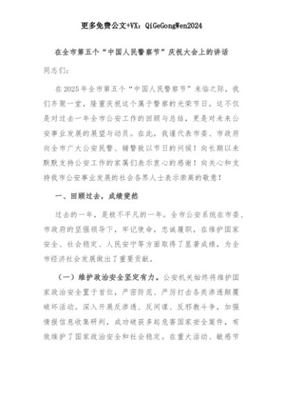 【七哥公文】2025年:在全市第五个“中国人民警察节”庆祝大会上的讲话+更多免费公文+VX:QiGeGongWen2024+更多免费公文+VX:QiGeGongWen2024