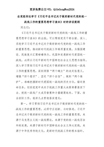 【七哥公文】2025年:在党组传达学习《习近平总书记关于做好新时代党的统一战线工作的重要思想学习读本》时的讲话提纲+更多免费公文+VX:QiGeGongWen2024+更多免费公文+VX:QiGeGongWen2024