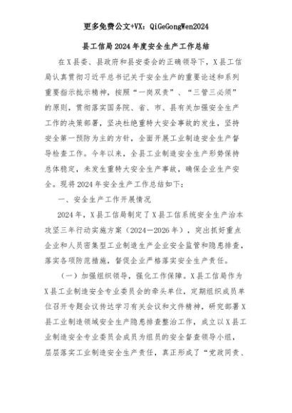 【七哥公文】2025年:县工信局2024年度安全生产工作总结+更多免费公文+VX:QiGeGongWen2024+更多免费公文+VX:QiGeGongWen2024
