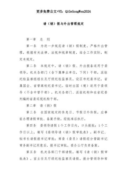 【七哥公文】2025年:请(销)假与外出管理规定+更多免费公文+VX:QiGeGongWen2024+更多免费公文+VX:QiGeGongWen2024