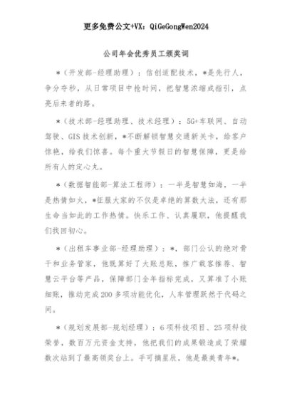 【七哥公文】2025年:公司年会优秀员工颁奖词+更多免费公文+VX:QiGeGongWen2024+更多免费公文+VX:QiGeGongWen2024