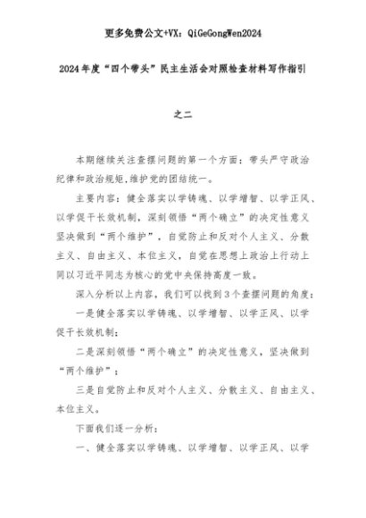 【七哥公文】2025年:2024年度“四个带头”民主生活会对照检查材料写作指引之二+更多免费公文+VX:QiGeGongWen2024+更多免费公文+VX:QiGeGongWen2024