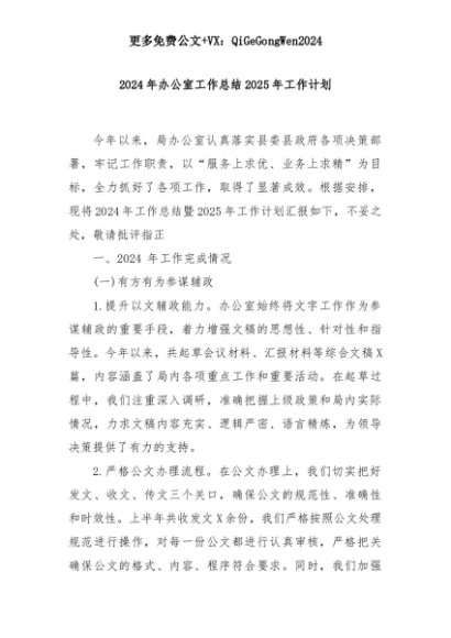 【七哥公文】2025年:2024年办公室工作总结2025年工作计划+更多免费公文+VX:QiGeGongWen2024+更多免费公文+VX:QiGeGongWen2024