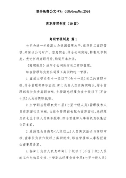 【七哥公文】2025年:(19篇)离职管理制度+更多免费公文+VX:QiGeGongWen2024+更多免费公文+VX:QiGeGongWen2024