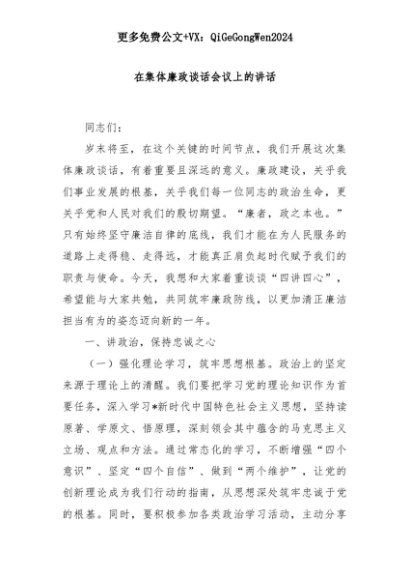 【七哥公文】2025年:在集体廉政谈话会议上的讲话+更多免费公文+VX:QiGeGongWen2024+更多免费公文+VX:QiGeGongWen2024
