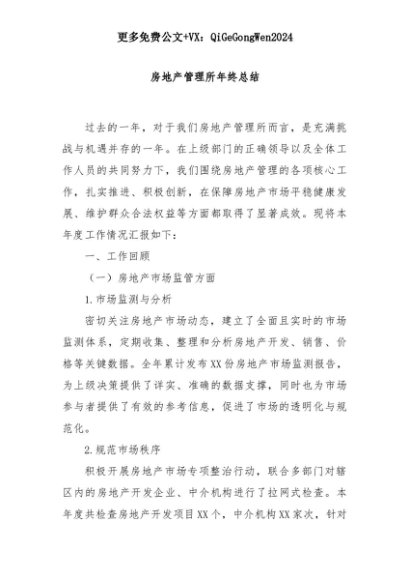 【七哥公文】2025年:房地产管理所年终总结+更多免费公文+VX:QiGeGongWen2024+更多免费公文+VX:QiGeGongWen2024