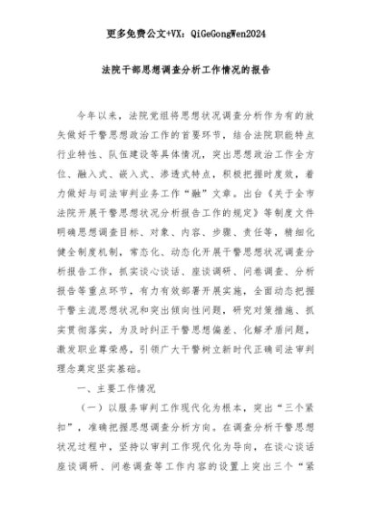 【七哥公文】2025年:法院干部思想调查分析工作情况的报告+更多免费公文+VX:QiGeGongWen2024+更多免费公文+VX:QiGeGongWen2024
