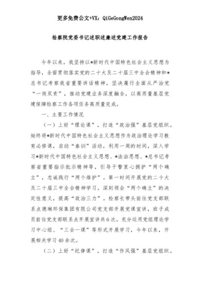 【七哥公文】2025年:检察院党委书记述职述廉述党建工作报告+更多免费公文+VX:QiGeGongWen2024+更多免费公文+VX:QiGeGongWen2024