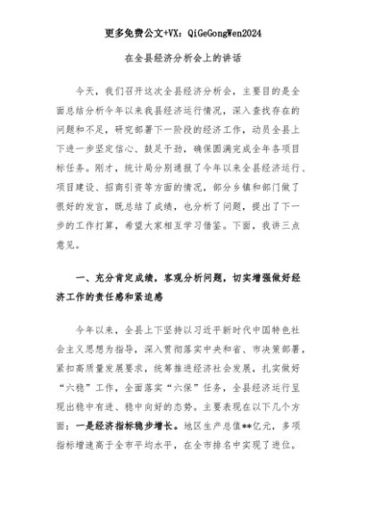 【七哥公文】2025年:在全县经济分析会上的讲话+更多免费公文+VX:QiGeGongWen2024+更多免费公文+VX:QiGeGongWen2024