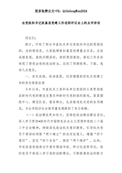 【七哥公文】2025年:在党组织书记抓基层党建工作述职评议会上的点评讲话+更多免费公文+VX:QiGeGongWen2024+更多免费公文+VX:QiGeGongWen2024