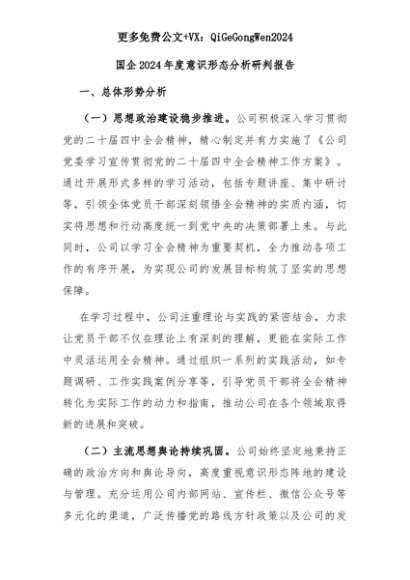 【七哥公文】2025年:国企2024年度意识形态分析研判报告+更多免费公文+VX:QiGeGongWen2024+更多免费公文+VX:QiGeGongWen2024
