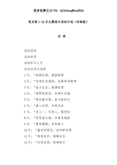 【七哥公文】2025年:党支部1-12月主题党日活动计划(详细版)+更多免费公文+VX:QiGeGongWen2024+更多免费公文+VX:QiGeGongWen2024