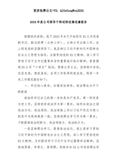 【七哥公文】2025年:2024年度公司领导干部述职述德述廉报告+更多免费公文+VX:QiGeGongWen2024+更多免费公文+VX:QiGeGongWen2024