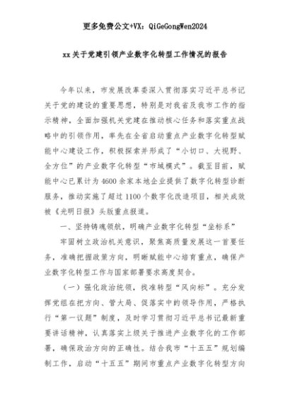 【七哥公文】2025年:xx关于党建引领产业数字化转型工作情况的报告+更多免费公文+VX:QiGeGongWen2024+更多免费公文+VX:QiGeGongWen2024