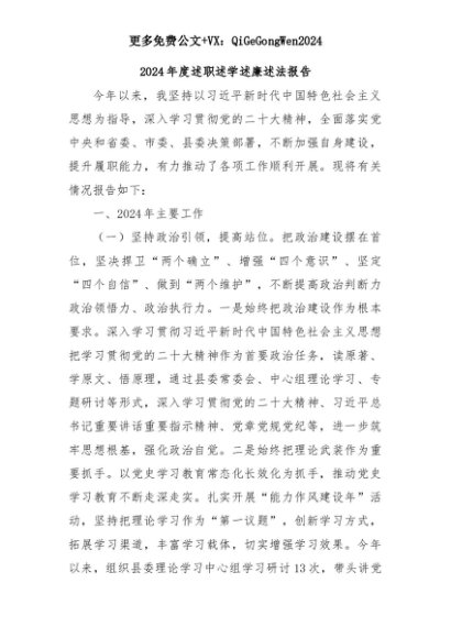 【七哥公文】2025年:2024年度述职述学述廉述法报告_+更多免费公文+VX:QiGeGongWen2024+更多免费公文+VX:QiGeGongWen2024