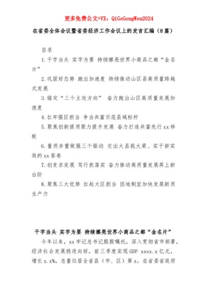 【七哥公文】2025年:(8篇)在省委全体会议暨省委经济工作会议上的发言汇编+更多免费公文+VX:QiGeGongWen2024+更多免费公文+VX:QiGeGongWen2024