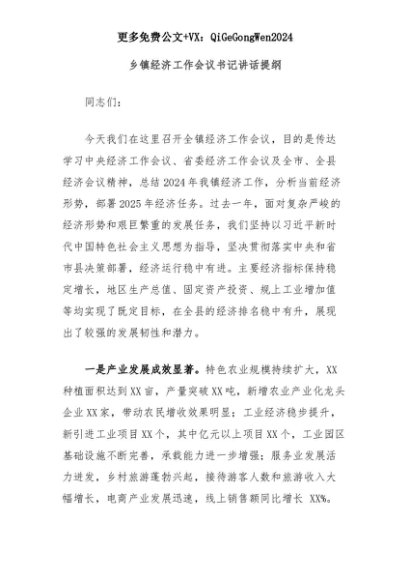 【七哥公文】2025年:乡镇经济工作会议书记讲话提纲+更多免费公文+VX:QiGeGongWen2024+更多免费公文+VX:QiGeGongWen2024