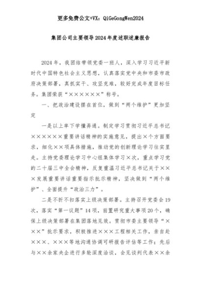 【七哥公文】2025年:集团公司主要领导2024年度述职述廉报告+更多免费公文+VX:QiGeGongWen2024+更多免费公文+VX:QiGeGongWen2024