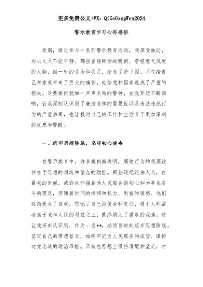 【七哥公文】2025年:警示教育学习心得感悟+更多免费公文+VX:QiGeGongWen2024+更多免费公文+VX:QiGeGongWen2024