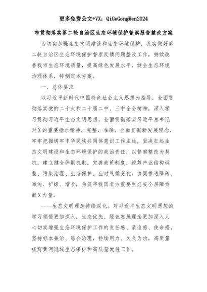 【七哥公文】2025年:市贯彻落实第二轮自治区生态环境保护督察报告整改方案+更多免费公文+VX:QiGeGongWen2024+更多免费公文+VX:QiGeGongWen2024
