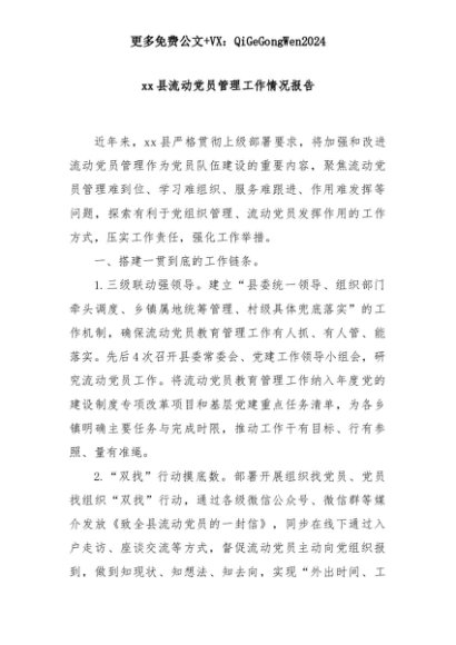 【七哥公文】2025年:xx县流动党员管理工作情况报告+更多免费公文+VX:QiGeGongWen2024+更多免费公文+VX:QiGeGongWen2024