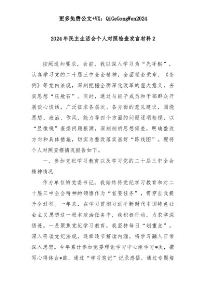 【七哥公文】2025年:2024年民主生活会个人对照检查发言材料3+更多免费公文+VX:QiGeGongWen2024+更多免费公文+VX:QiGeGongWen2024