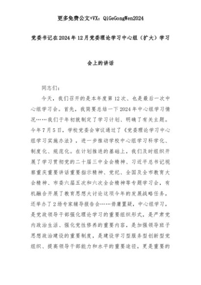 【七哥公文】2025年:党委书记在2024年12月党委理论学习中心组(扩大)学习会上的讲话+更多免费公文+VX:QiGeGongWen2024+更多免费公文+VX:QiGeGongWen2024