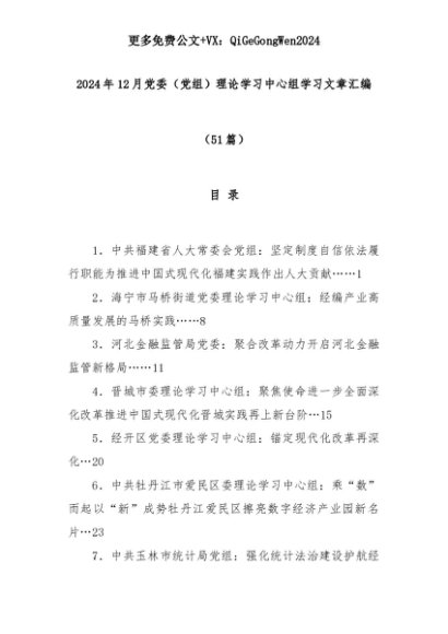 【七哥公文】2025年:(51篇)2024年12月党委(党组)理论学习中心组学习文章汇编+更多免费公文+VX:QiGeGongWen2024+更多免费公文+VX:QiGeGongWen2024