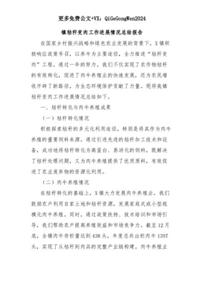 【七哥公文】2025年:镇秸秆变肉工作进展情况总结报告+更多免费公文+VX:QiGeGongWen2024+更多免费公文+VX:QiGeGongWen2024