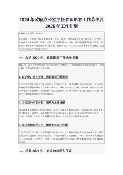 【七哥公文】2024年:2024年政府办公室主任意识形态工作总结及2025年工作计划+更多免费公文+VX:QiGeGongWen2024