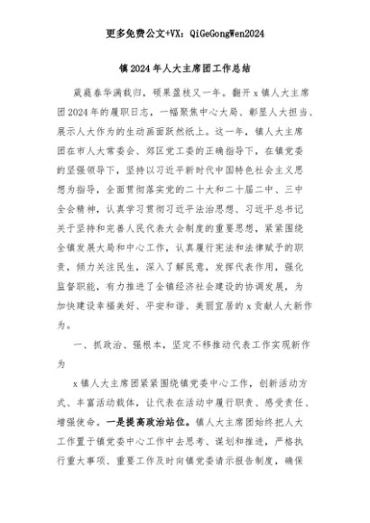 【七哥公文】2025年:镇2024年人大主席团工作总结+更多免费公文+VX:QiGeGongWen2024+更多免费公文+VX:QiGeGongWen2024