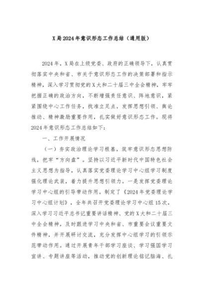 / 【七哥公文】2024年:X局2024年意识形态工作总结(通用版)+更多免费公文+VX:QiGeGongWen2024