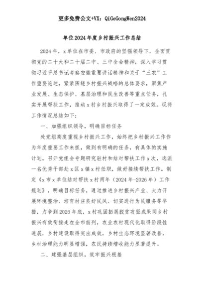 【七哥公文】2025年:单位2024年度乡村振兴工作总结+更多免费公文+VX:QiGeGongWen2024+更多免费公文+VX:QiGeGongWen2024