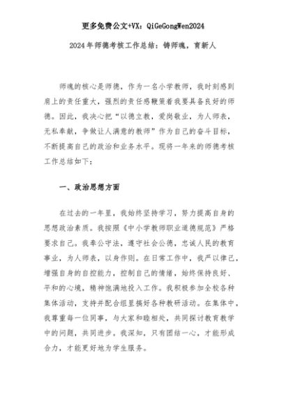 【七哥公文】2025年:2024年师德考核工作总结:铸师魂,育新人+更多免费公文+VX:QiGeGongWen2024+更多免费公文+VX:QiGeGongWen2024