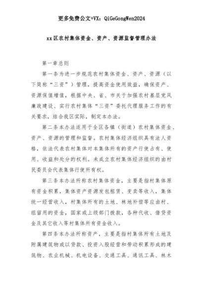 【七哥公文】2025年:xx区农村集体资金、资产、资源监督管理办法+更多免费公文+VX:QiGeGongWen2024+更多免费公文+VX:QiGeGongWen2024