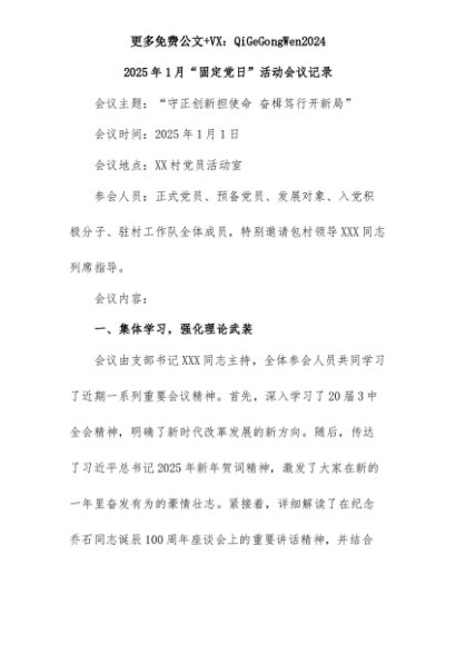 【七哥公文】2025年:2025年1月“固定党日”活动会议记录+更多免费公文+VX:QiGeGongWen2024+更多免费公文+VX:QiGeGongWen2024