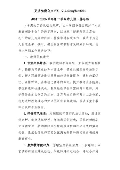 【七哥公文】2025年:2024-2025学年第一学期幼儿园工作总结+更多免费公文+VX:QiGeGongWen2024+更多免费公文+VX:QiGeGongWen2024