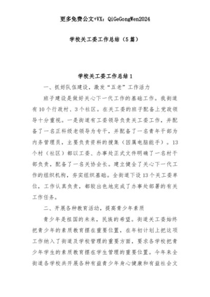 【七哥公文】2025年:(5篇)学校关工委工作总结+更多免费公文+VX:QiGeGongWen2024+更多免费公文+VX:QiGeGongWen2024