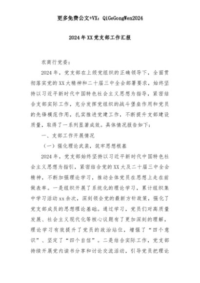 【七哥公文】2025年:2024年XX党支部工作汇报+更多免费公文+VX:QiGeGongWen2024+更多免费公文+VX:QiGeGongWen2024