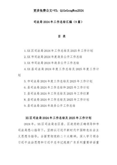 【七哥公文】2025年:(9篇)司法局2024年工作总结汇编+更多免费公文+VX:QiGeGongWen2024+更多免费公文+VX:QiGeGongWen2024