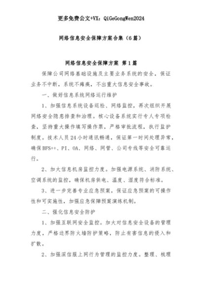 【七哥公文】2025年:(6篇)网络信息安全保障方案合集+更多免费公文+VX:QiGeGongWen2024+更多免费公文+VX:QiGeGongWen2024