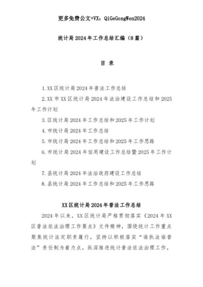 【七哥公文】2025年:(8篇)统计局2024年工作总结汇编+更多免费公文+VX:QiGeGongWen2024+更多免费公文+VX:QiGeGongWen2024