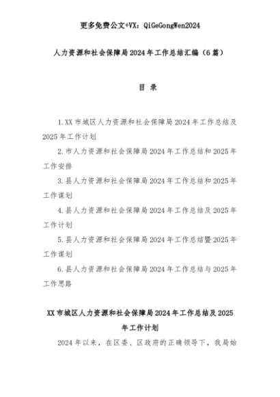 【七哥公文】2025年:(6篇)人力资源和社会保障局2024年工作总结汇编+更多免费公文+VX:QiGeGongWen2024+更多免费公文+VX:QiGeGongWen2024