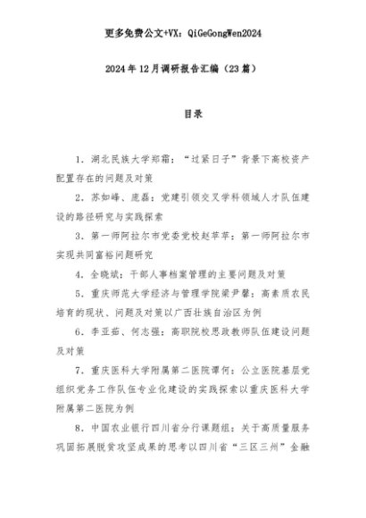 【七哥公文】2025年:(23篇)2024年12月调研报告汇编+更多免费公文+VX:QiGeGongWen2024+更多免费公文+VX:QiGeGongWen2024